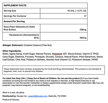 This is what summer sips like! Our non-alcohol noble kava extract pineapple-coconut spirit is infused with 350mg kavalactones per 1.5 fl oz shot. Designed to be enjoyed over ice, added to mocktails, or served with sparkling water.